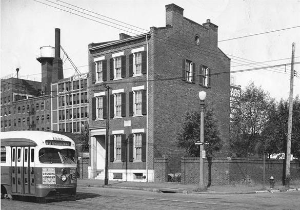 A streetcar passes the Eugene Field home at 634 South Broadway in 1945. The home is the lone survivor of what were once 12 homes known as Walsh’s Row.